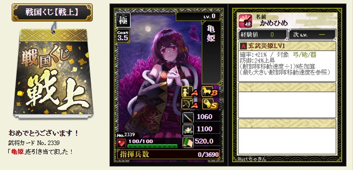 影武者残党のお詫びは、予想通りというのか?定番の戦上くじ2枚でした(苦笑)